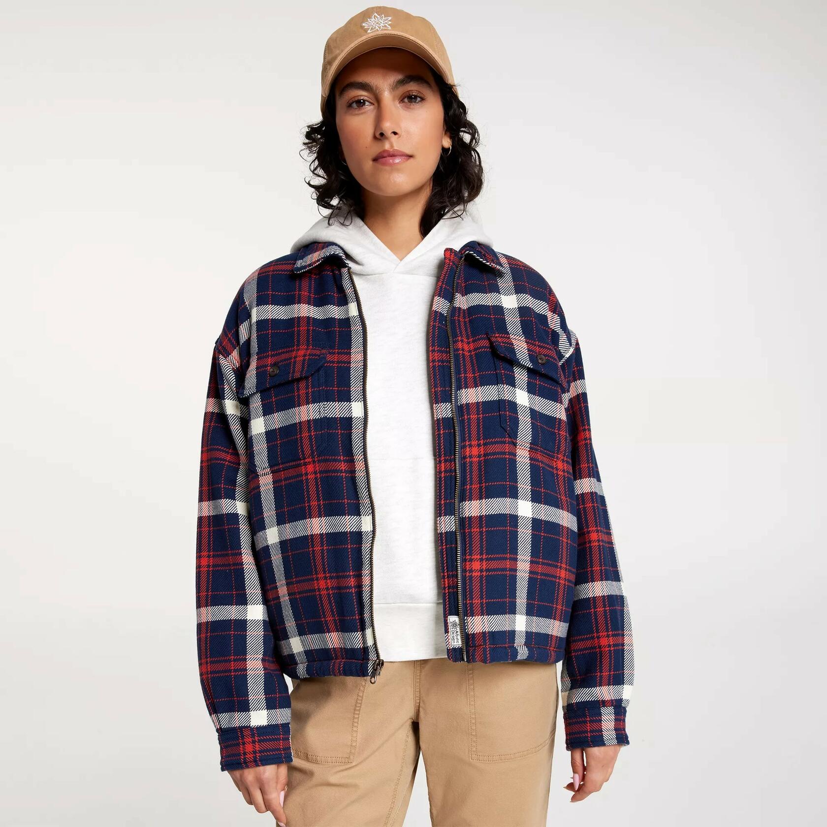 Fit & Design Regular fit shirt jacket Collared with center front zipper for a combination of ease and classic outdoor style Chest pockets with button flap closures keep valuables secure and within easy reach Locker loop at back The cuffs are more fitted to the wrist than the rest of the sleeves while still allowing you to move Lined with soft Sherpa fabric for a warm, plush feel The pre-washed fabric treatment creates a soft, lived-in hand feel Additional Details Fabric made from organically grown cotton to support more sustainable farming practices.