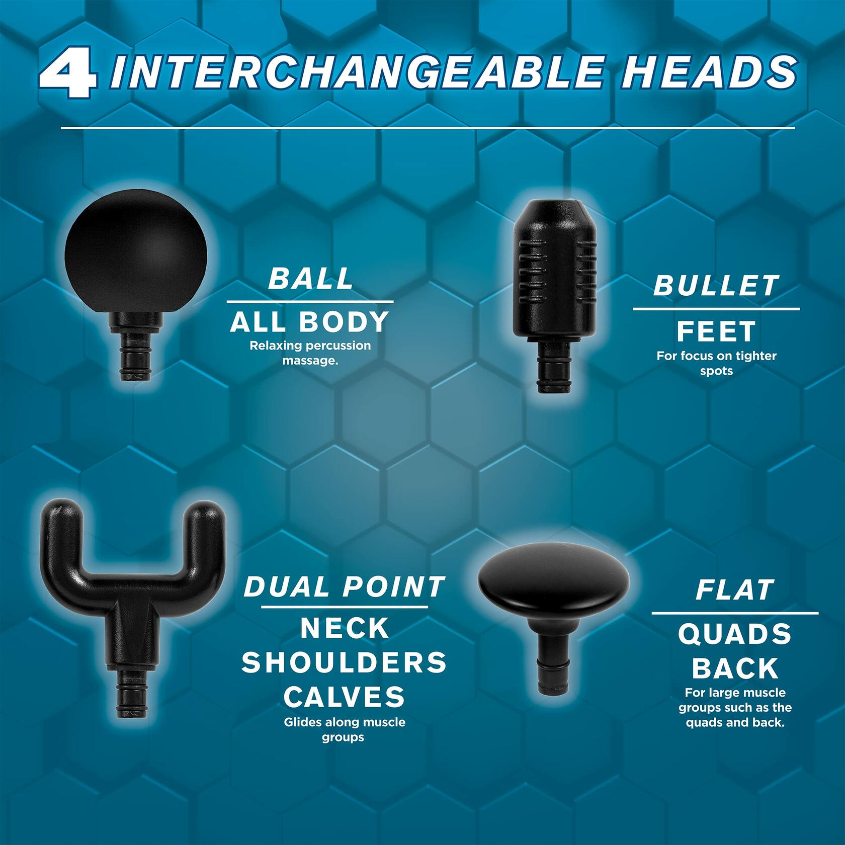Copper Fit Unisex Adult Massage Gun, Rechargeable w/4 Massage Attachments, Black