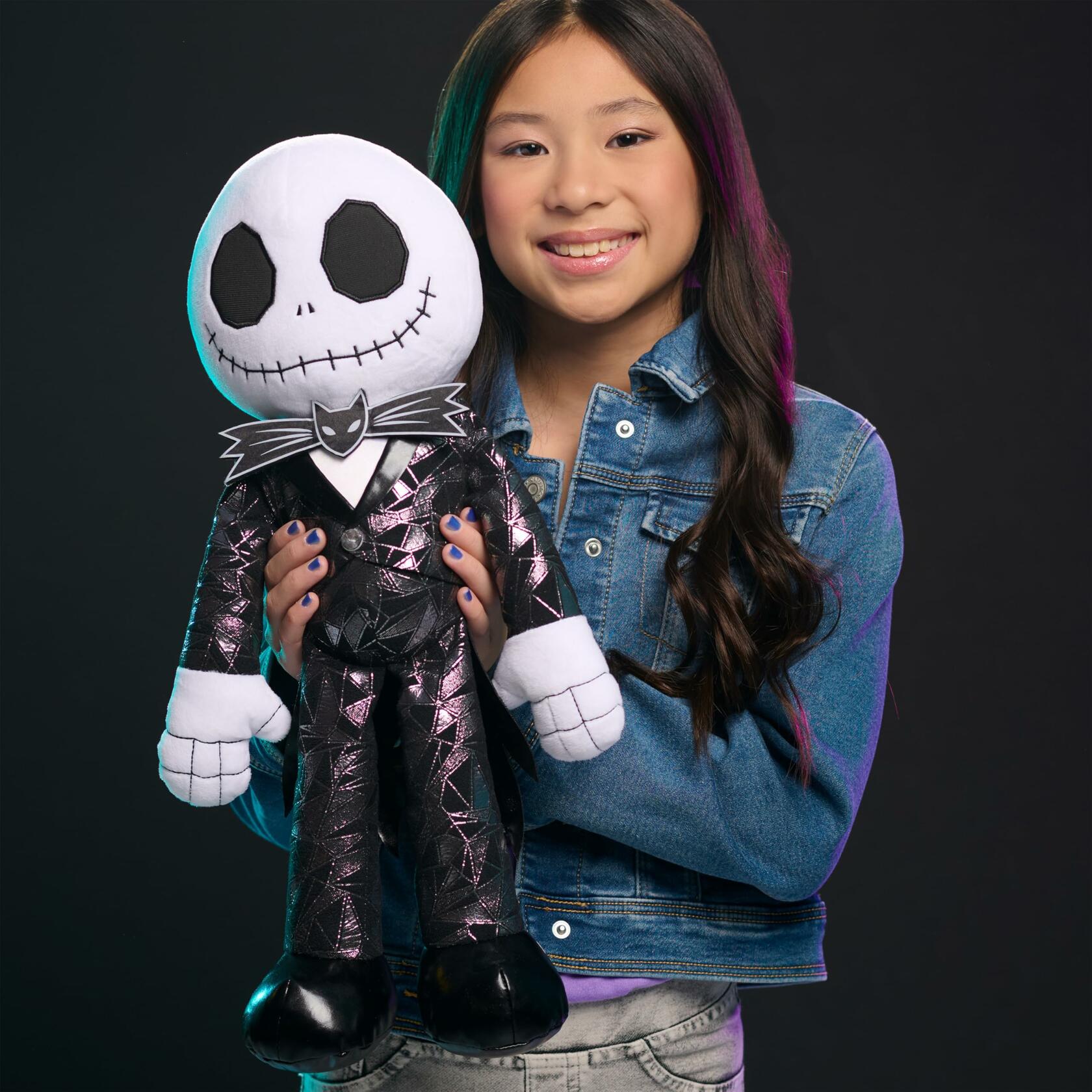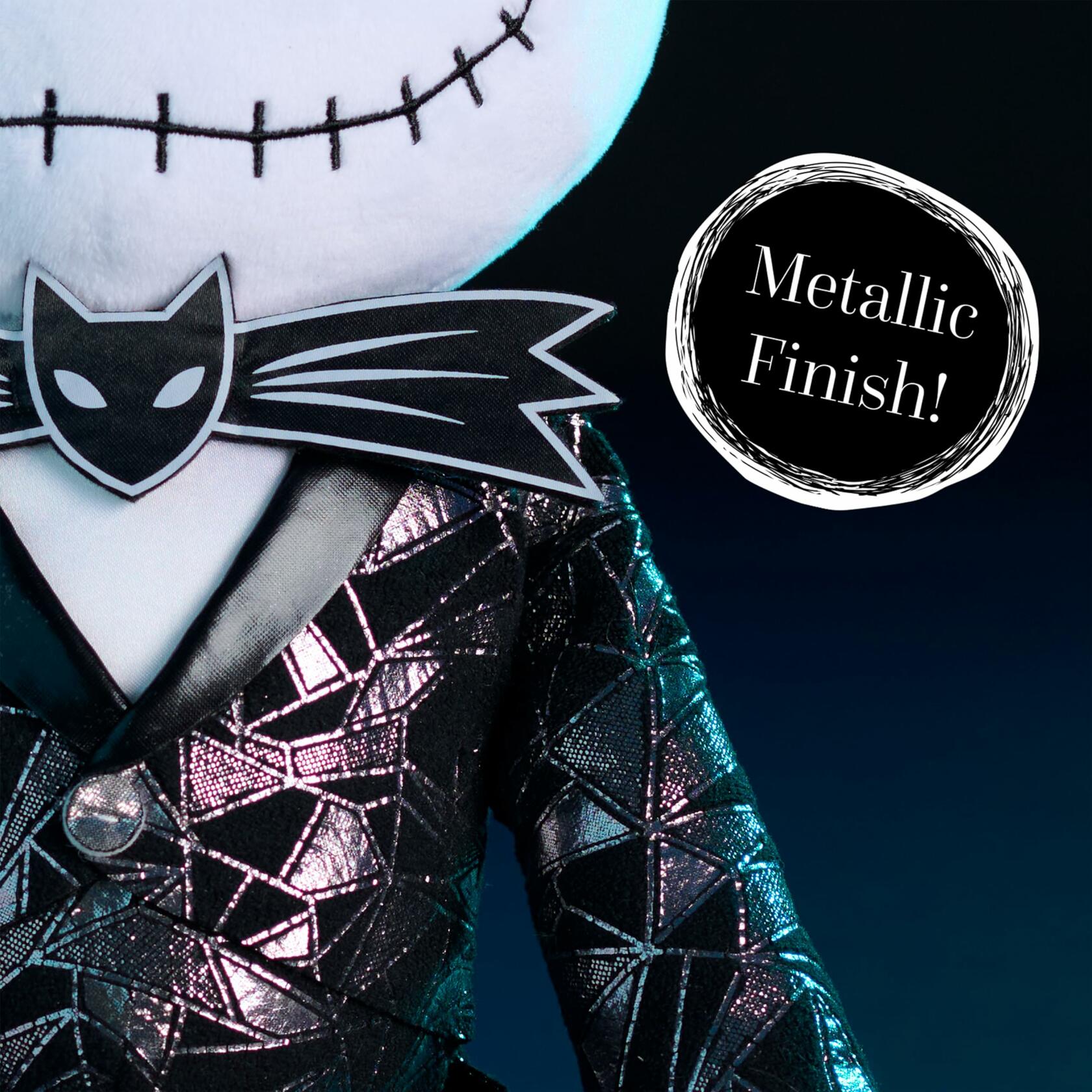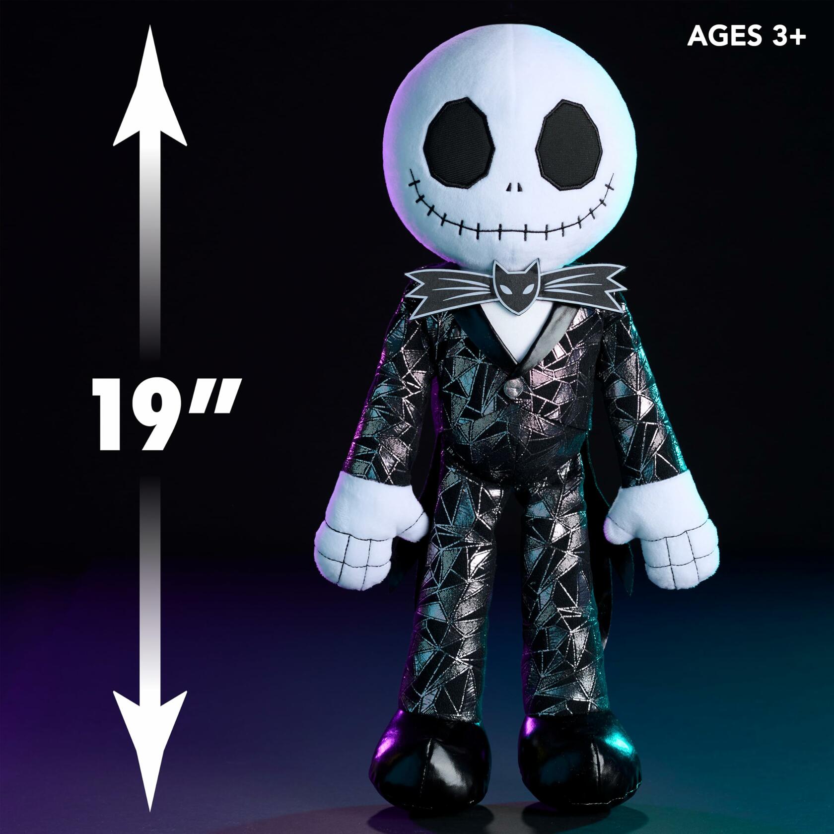 - Dreadfully Dapper: This 19-inch Jack Skellington plushie dazzles in a shimmering black and silver suit finished with glossy black shoes and signature bat bow tie.
