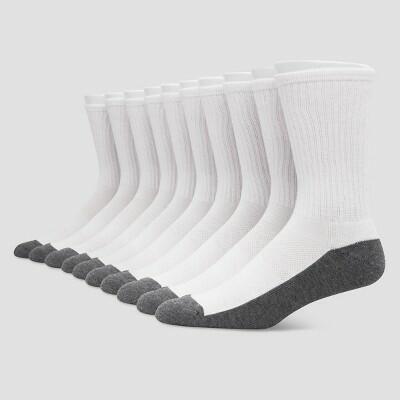 Hanes Premium Men's Crew Socks 10pk - White 6-12: Cushioned Sole Reinforced Heel