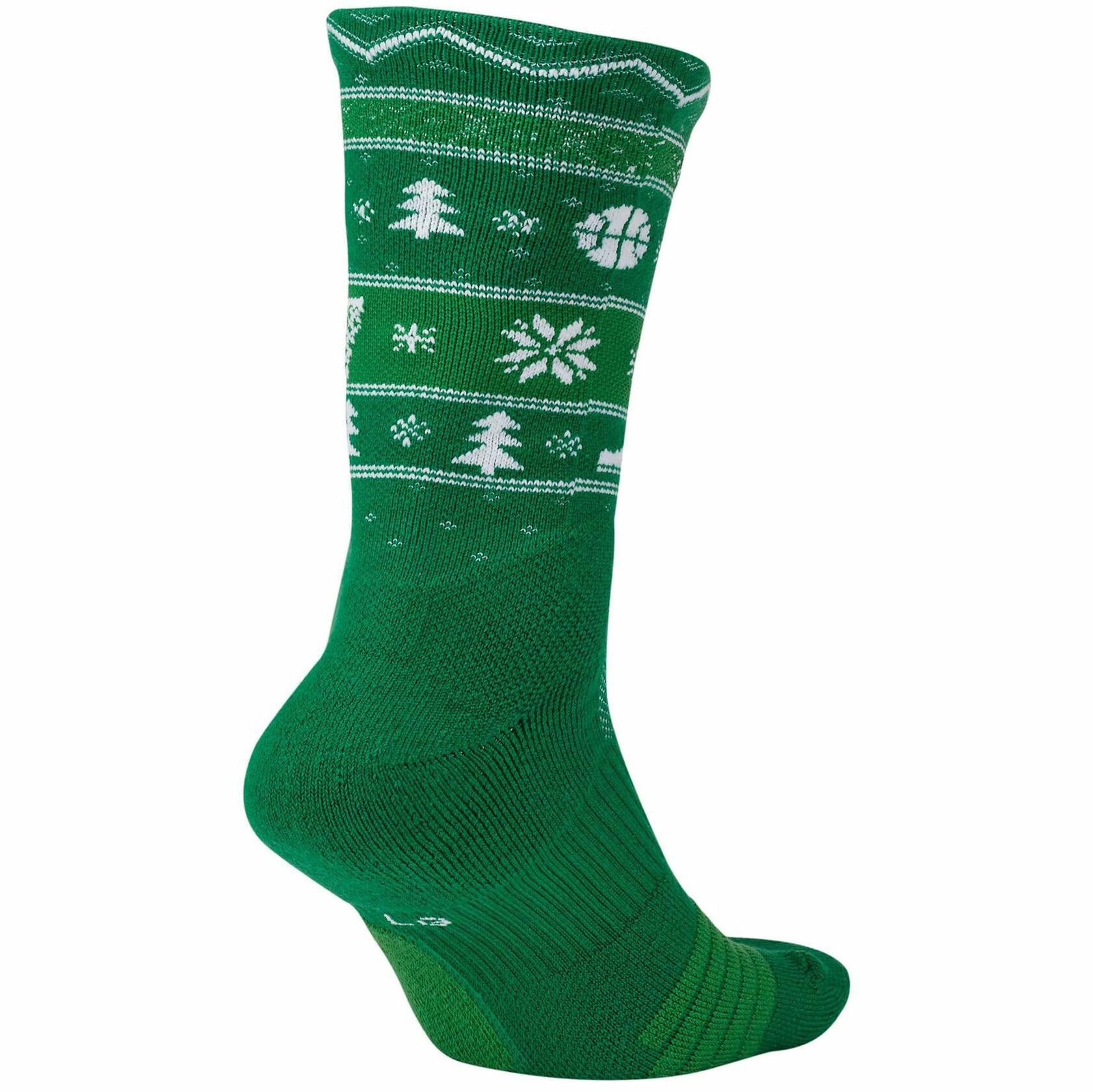 Nike Elite Unisex Christmas Edition Basketball Crew Socks Medium (Fits Men 6-8, Women 6-10} Green, White SX7866-312