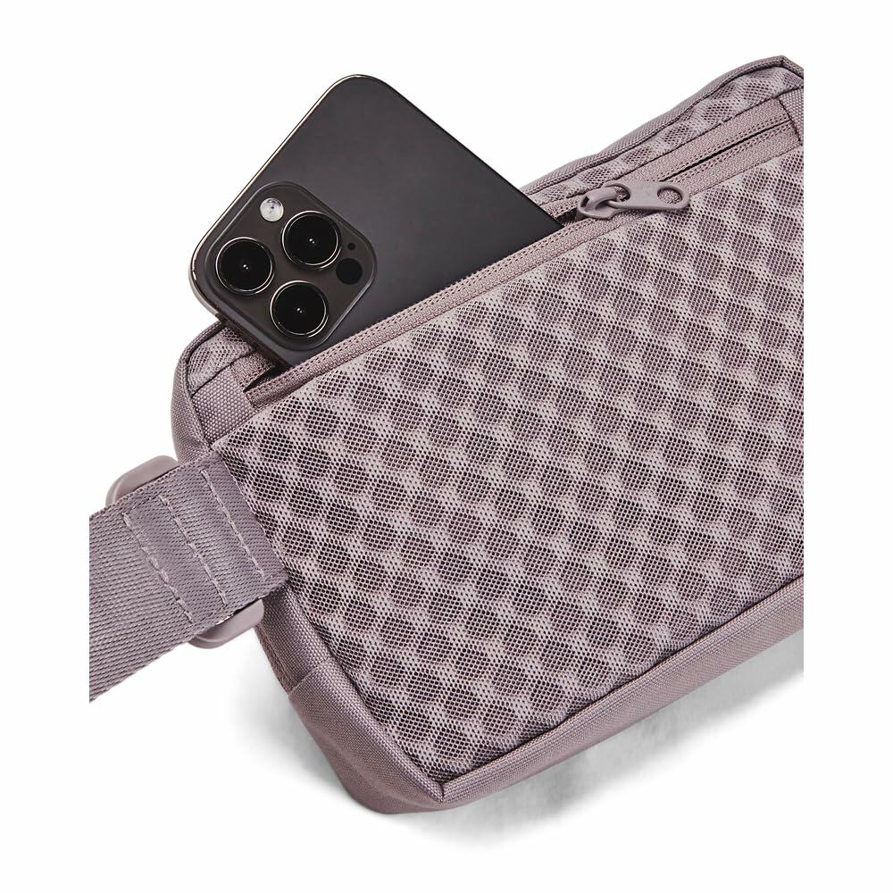 Description Water-resistant UA Storm technology keeps your stuff dry. Adjustable strap with buckle closure can be worn as a waist bag or a crossbody. RFID-blocking pocket on back for credit card theft protection. Zippered main compartment with internal organization pockets & key clip. Front valuables pocket. Dimensions When Full: 2""W x 5.1""H x 7.9""L. Volume: 2 L. 100% Polyester.